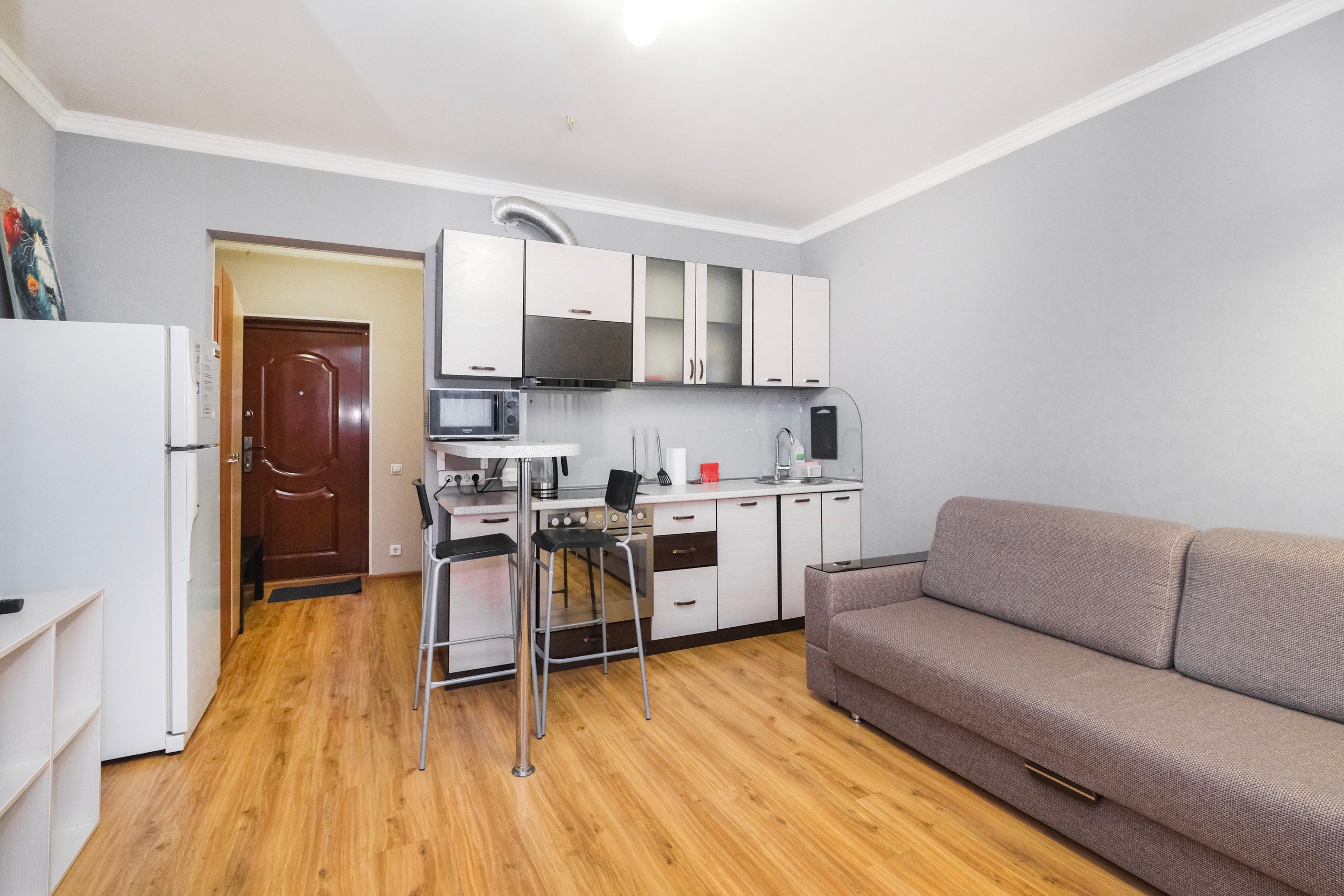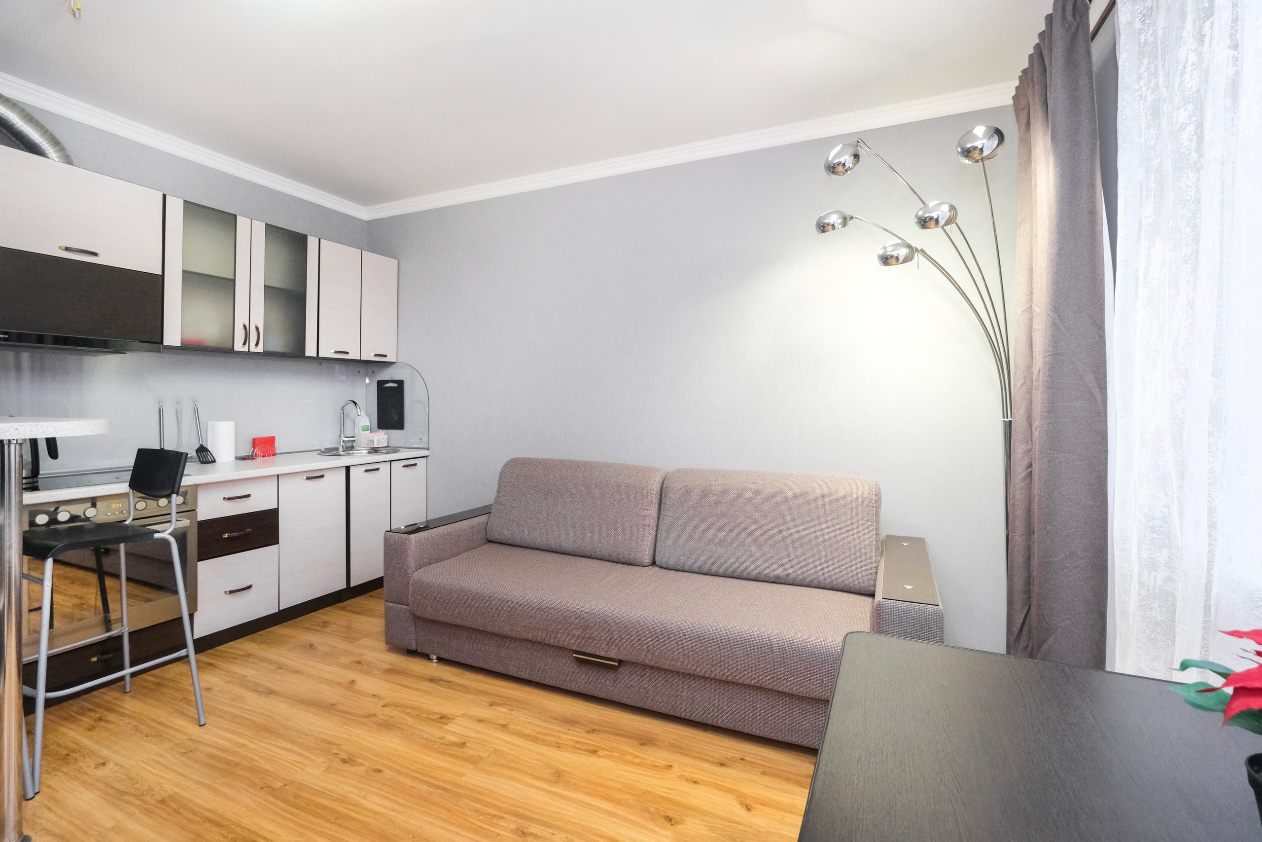 Комфортная студия с приглушенным светом, где можно очень хорошо отдохнуть.