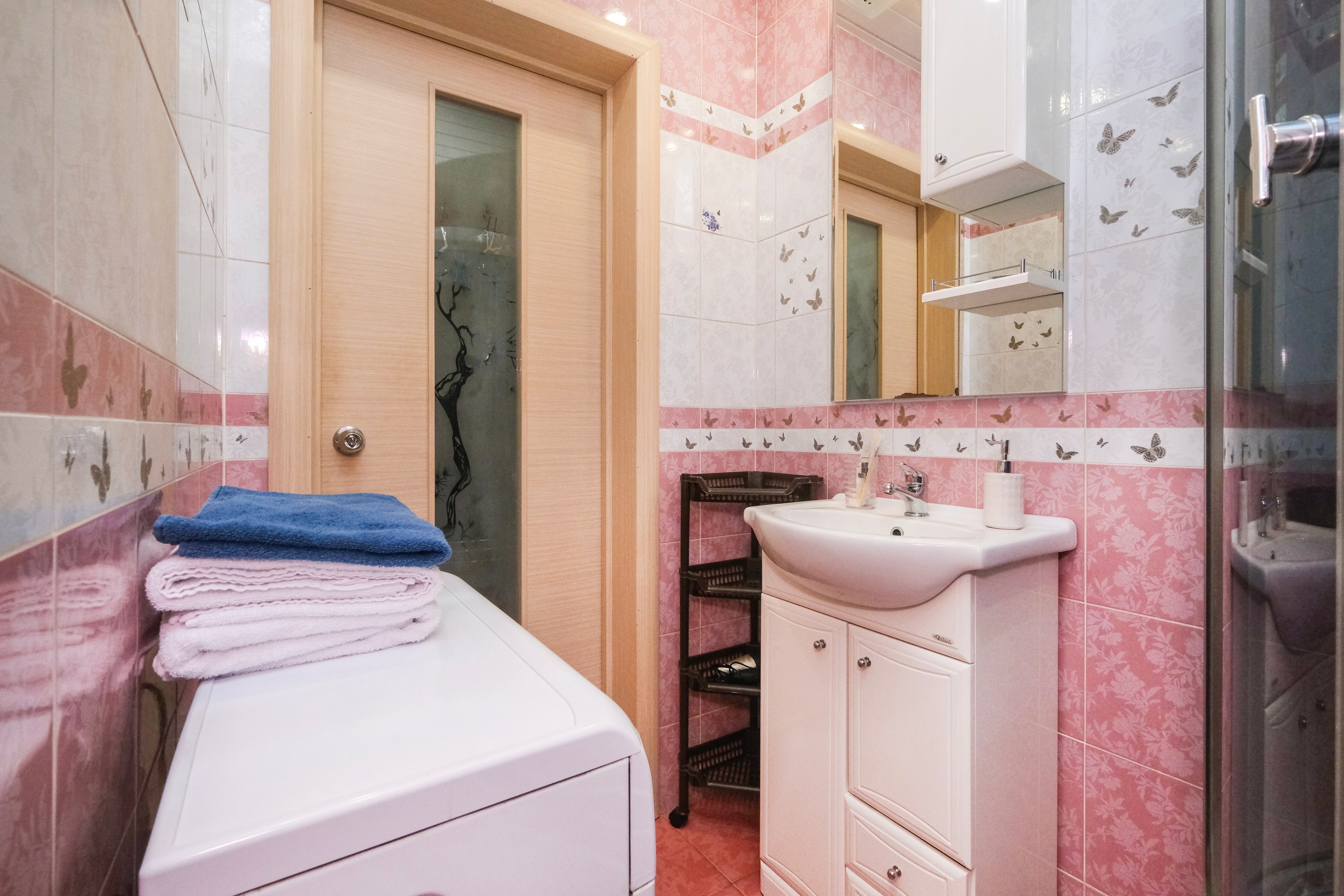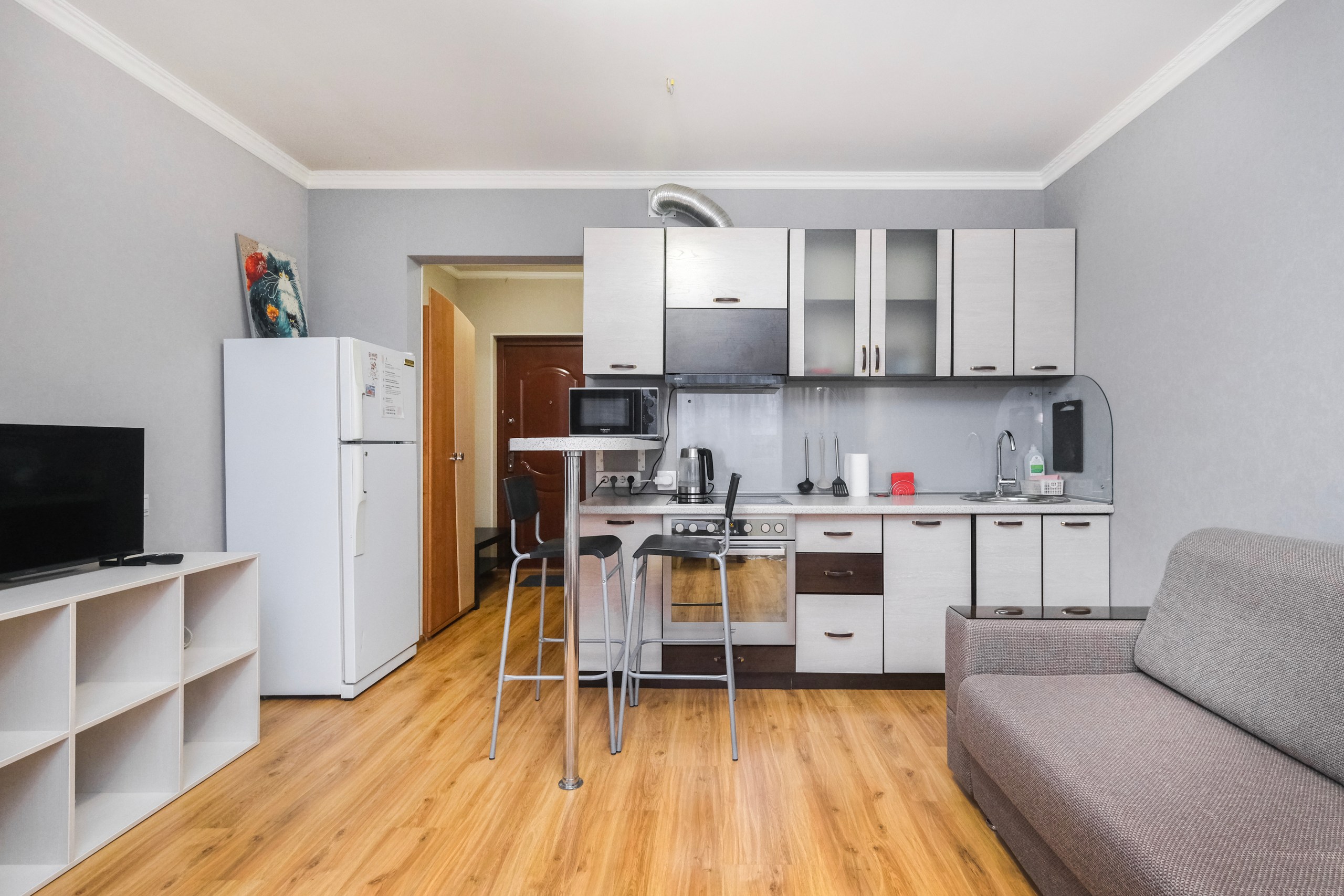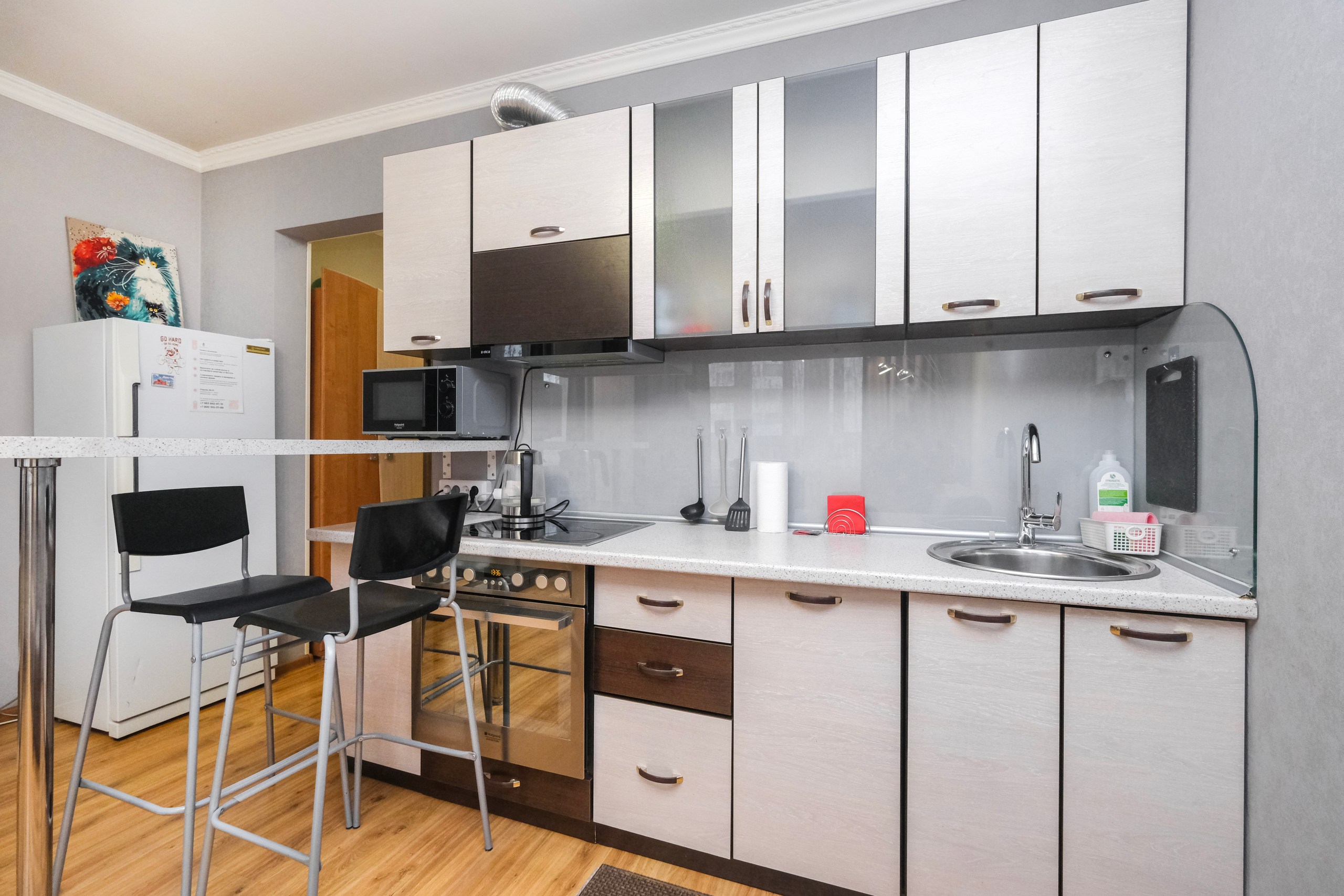удобный диван-кровать, цифровое TV, машинка-автомат, Wi-Fi, индивидуальный гигиенический набор, чистое постельное белье и полотенца, тапочки, фен, утюг, обустроенная кухня со всей необходимой техникой и все, что нужно, чтобы почувствовать себя как дома.