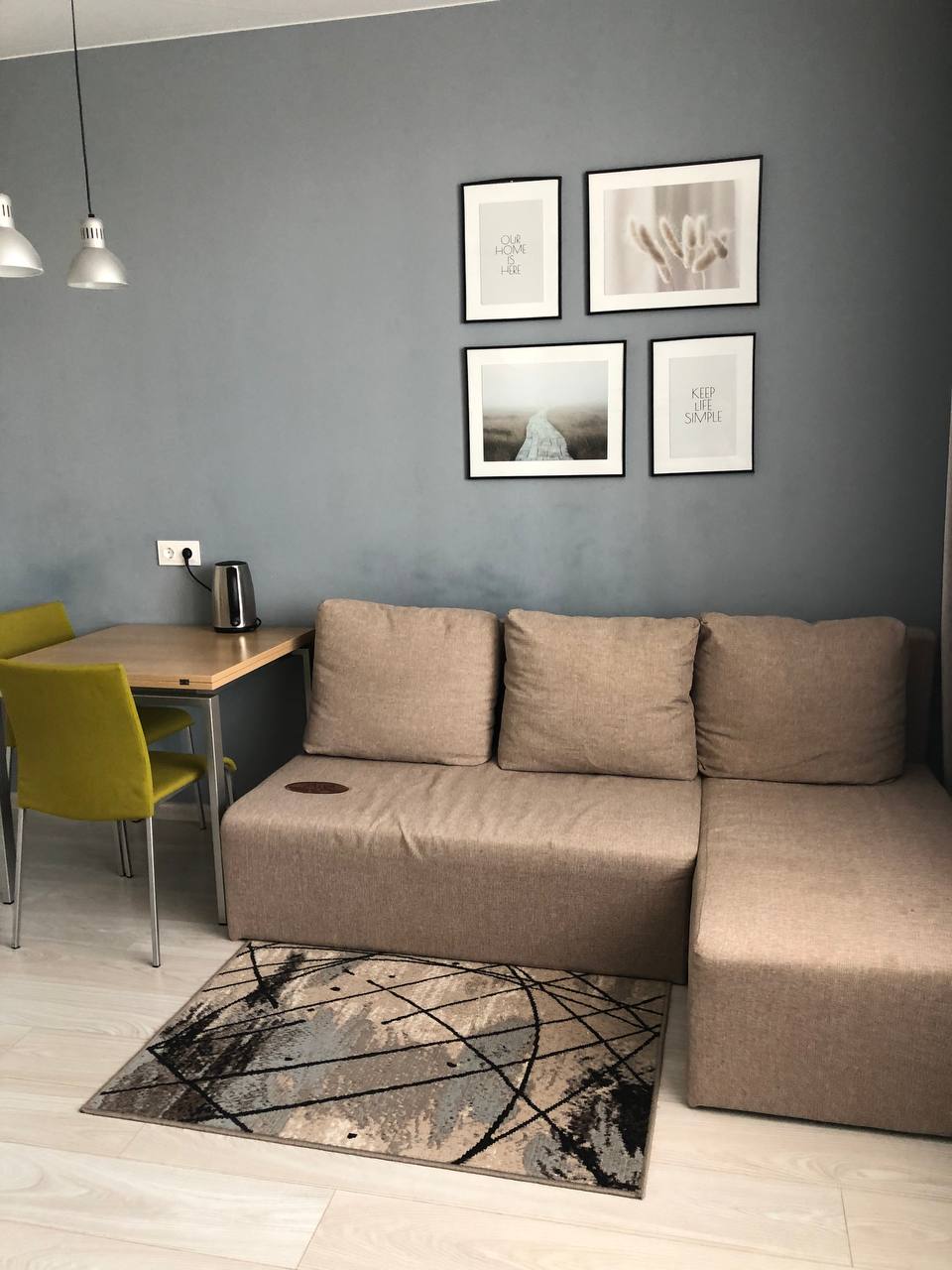 удобный диван-кровать, цифровое TV, машинка-автомат, Wi-Fi, индивидуальный гигиенический набор, чистое постельное белье и полотенца, тапочки, фен, утюг, фильтр для воды, обустроенная кухня со всей необходимой техникой и все, что нужно, чтобы почувствовать себя как дома.