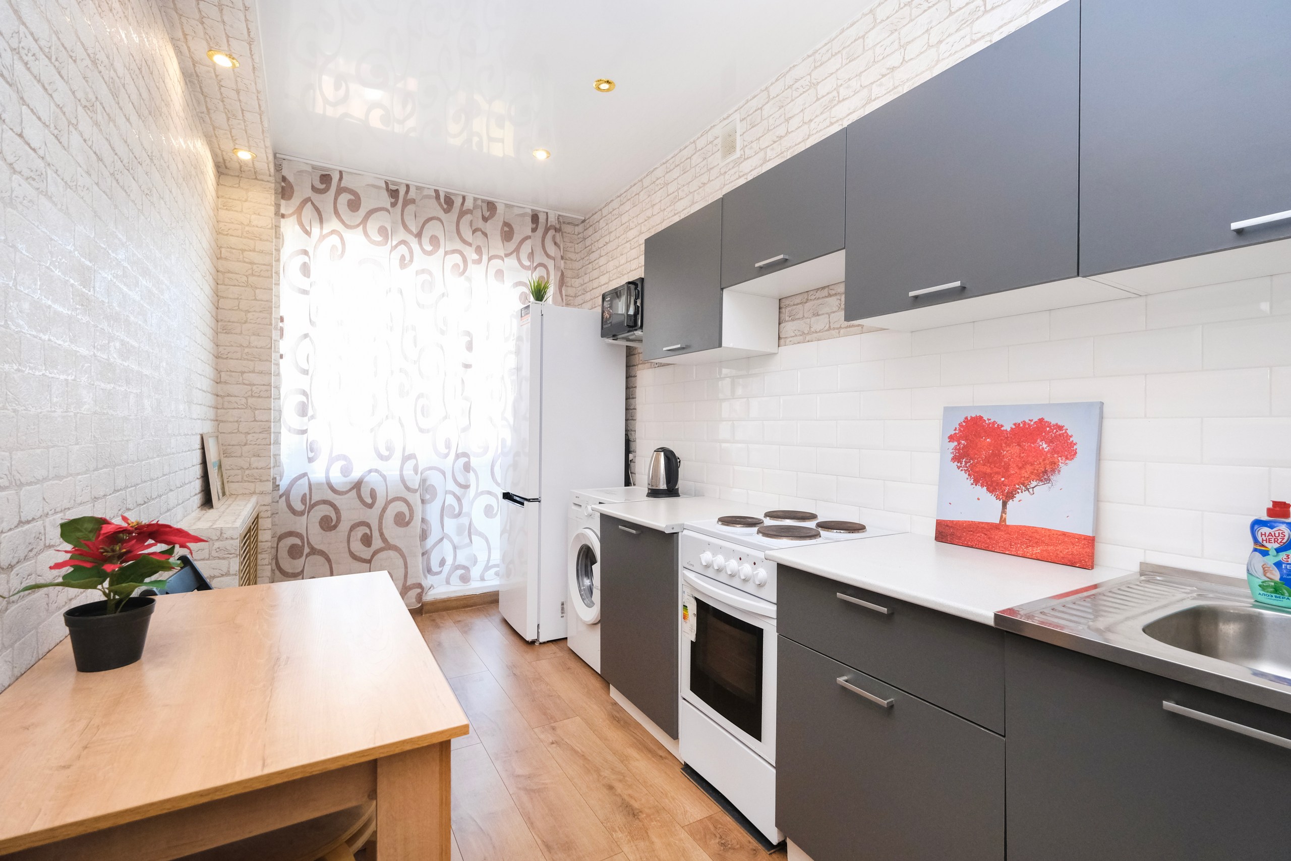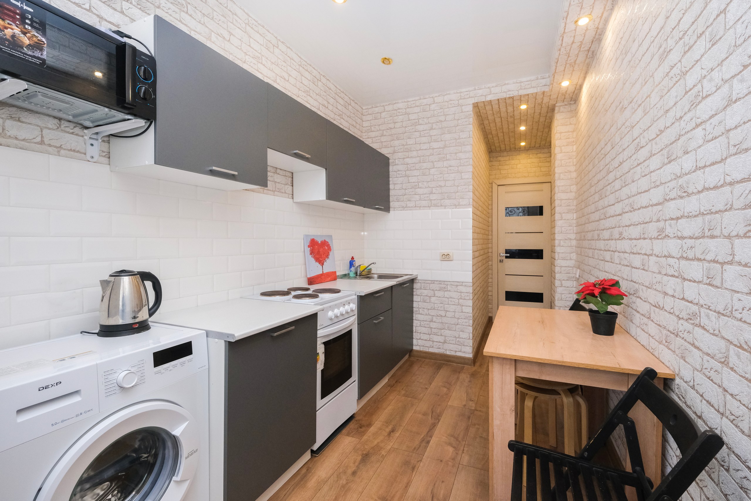 двуспальная кровать, удобный диван-кровать, цифровое TV, машинка-автомат, Wi-Fi, индивидуальный гигиенический набор, чистое постельное белье и полотенца, тапочки, фен, утюг, фильтр для воды, обустроенная кухня со всей необходимой техникой и все, что нужно, чтобы почувствовать себя как дома.